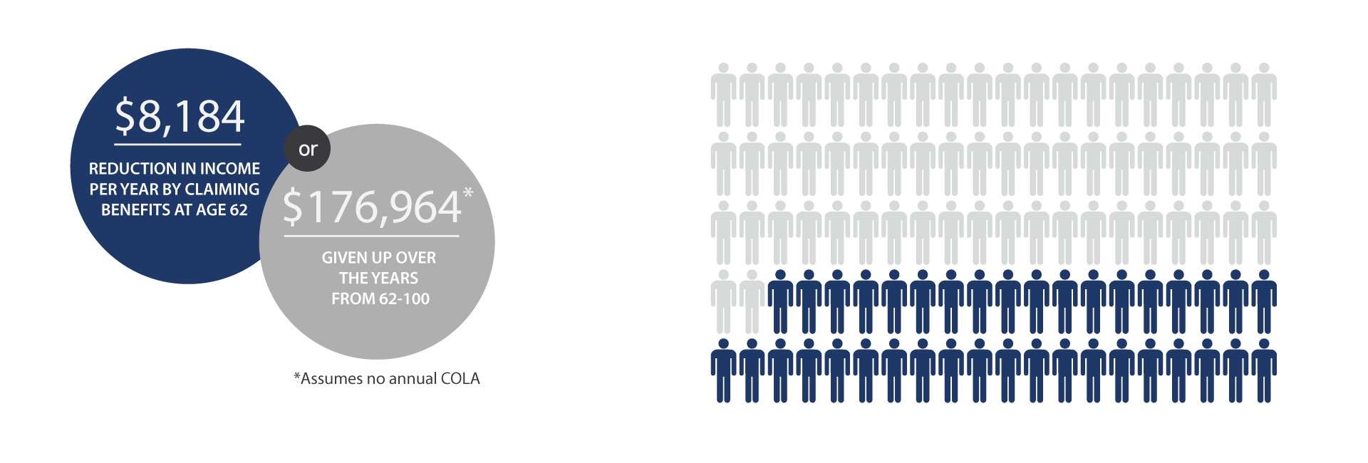 Over the 38 years from age 62 until age 100, this means giving up $176,964.